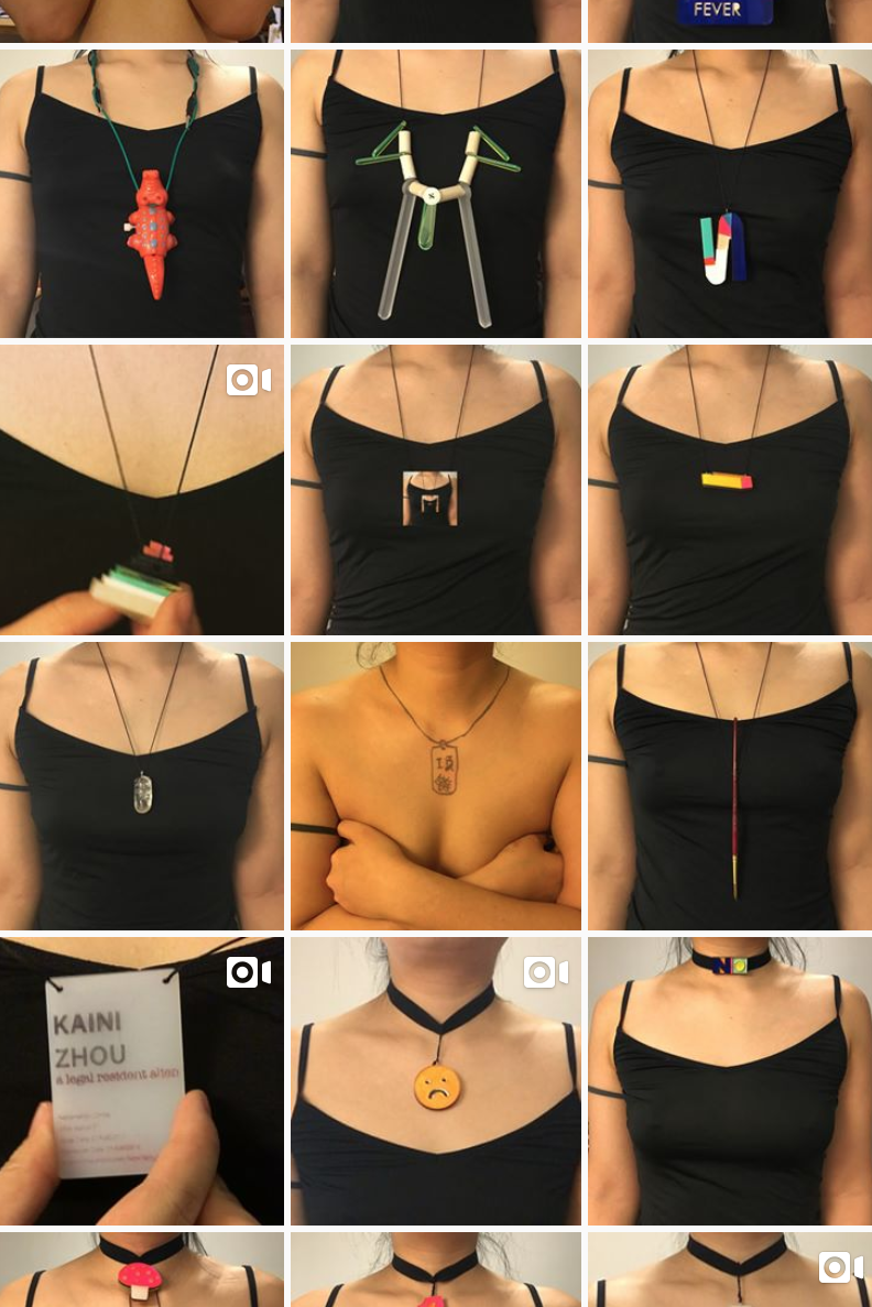 I made one necklace per day for 100 days with acrylic and other weird things, by hand or in a laser-cutter.
